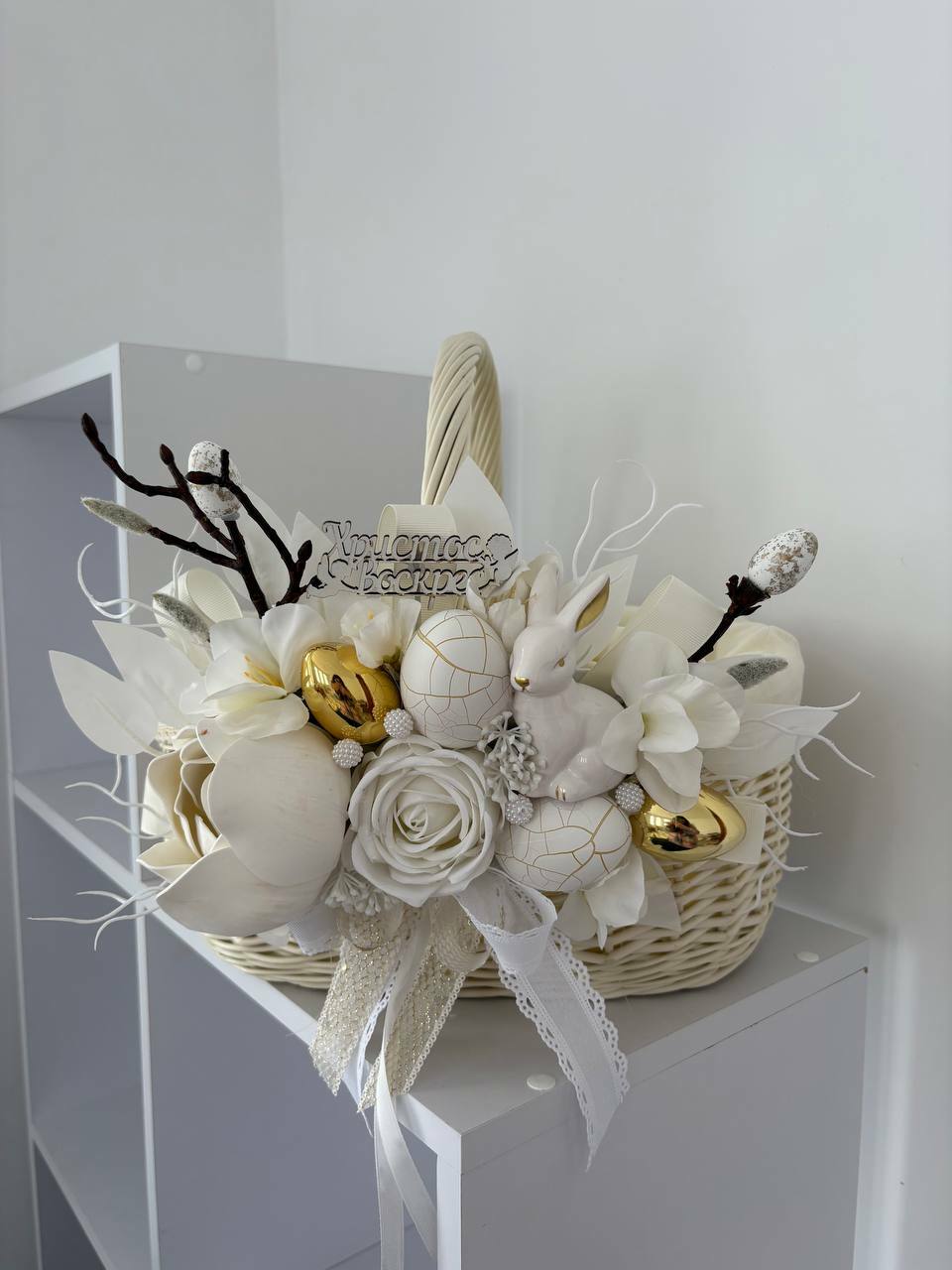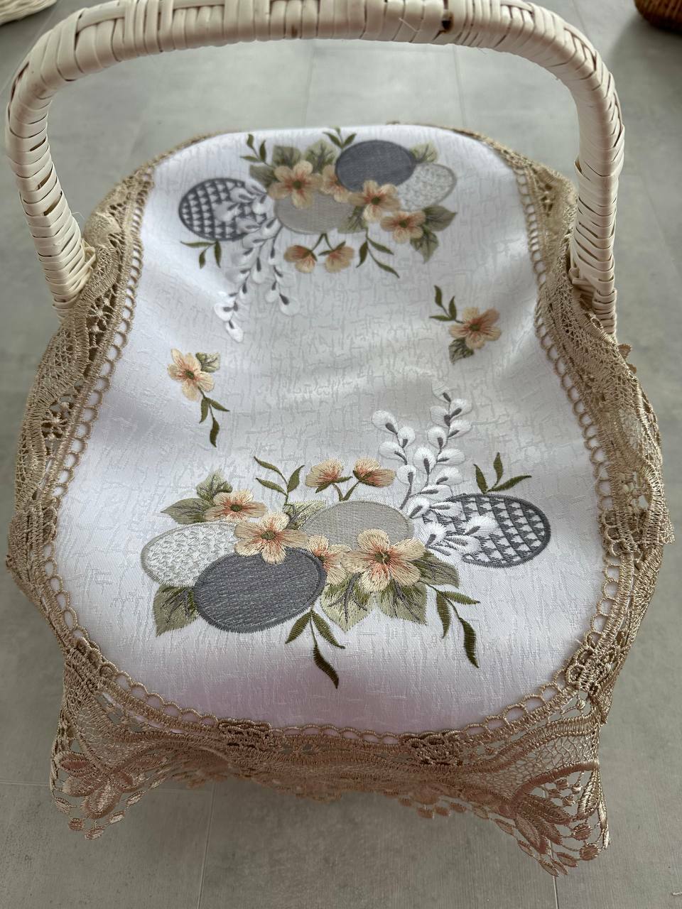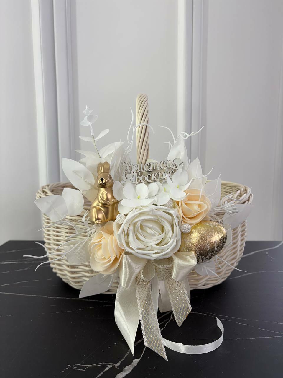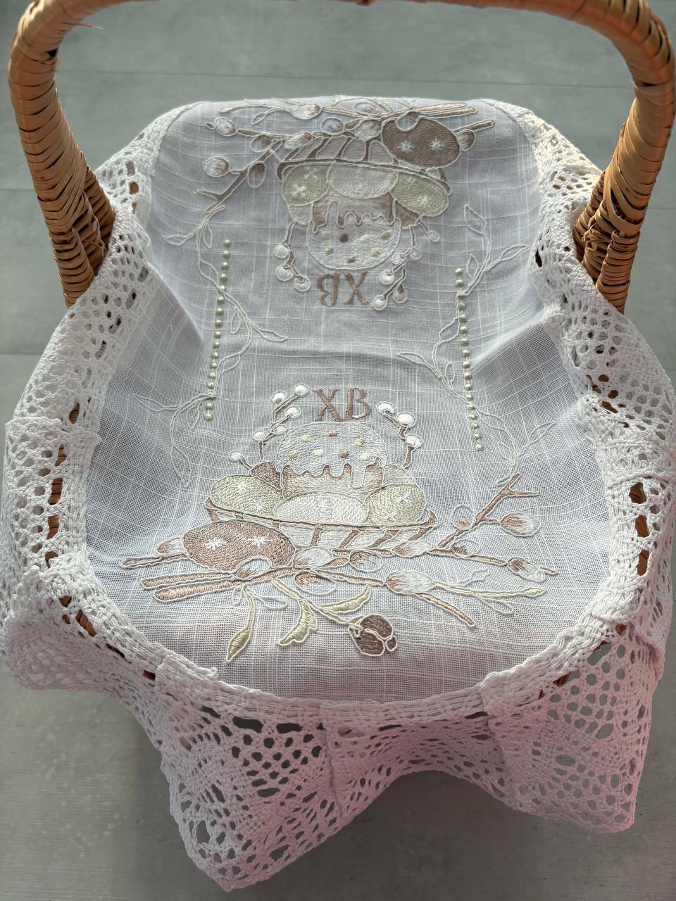Набір: кошик+бантик з декором+ стрічка кругом кошика+серветка.